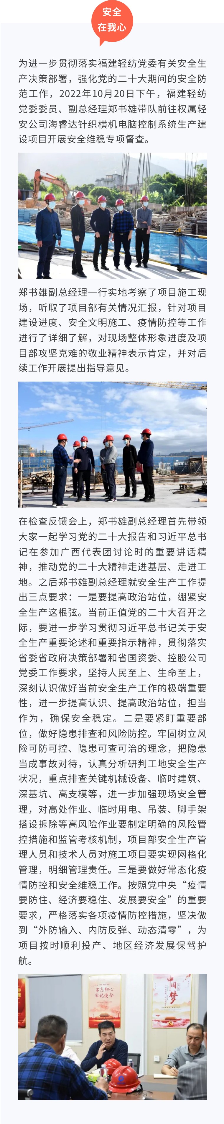 福建輕紡黨委委員、副總經(jīng)理鄭書雄帶隊開展安全維穩(wěn)專項督查