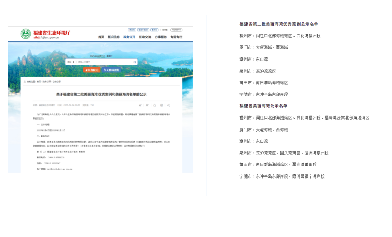美麗海灣建設(shè)是美麗中國建設(shè)在海洋領(lǐng)域的集中體現(xiàn)和重要載體。為進一步引導(dǎo)、推動全省美麗海灣建設(shè),近日,福建省生態(tài)環(huán)境廳公示了福建省第二批美麗海灣優(yōu)秀案例和美麗海灣名單。其中,由金皇環(huán)保協(xié)助地方申報的海灣中,有3個獲評福建省第二批美麗海灣優(yōu)秀案例,6個獲評福建省美麗海灣。